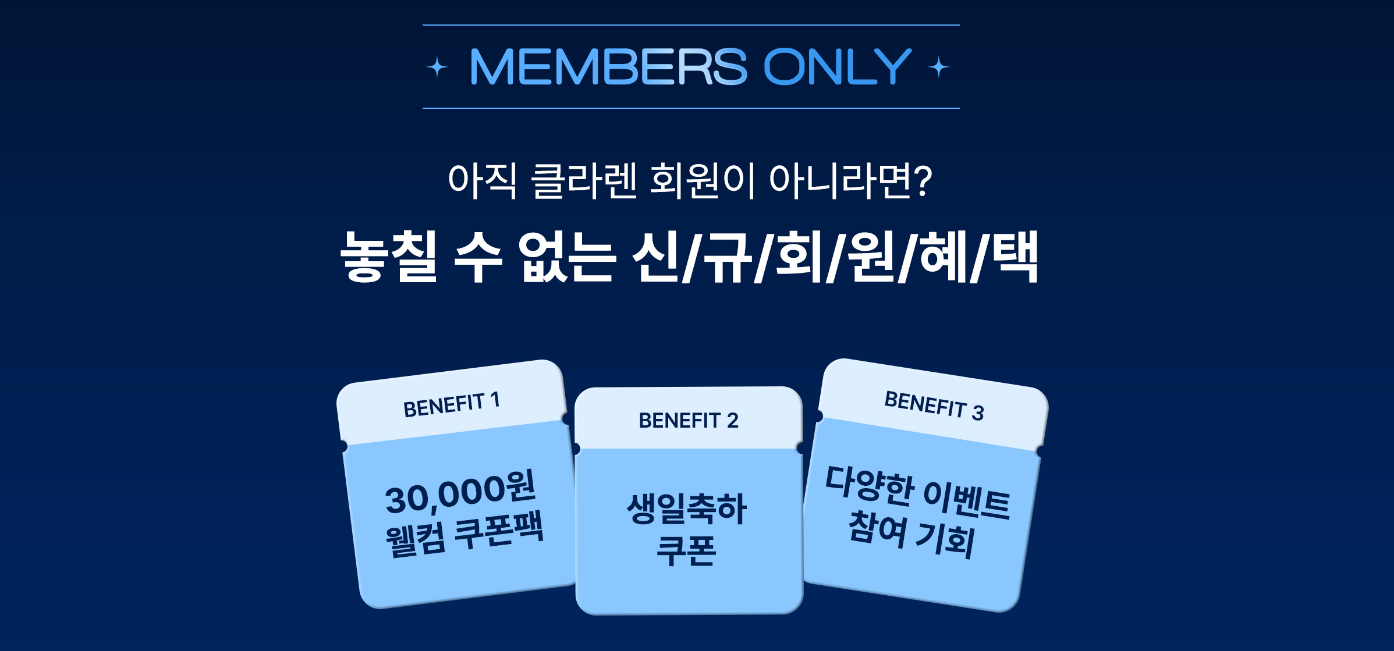또한, 신규 가입 이벤트 외에도 다양한 제품 증정 이벤트가 진행 중이니, 클라렌 웹사이트에 방문하여 회원가입해보세요!