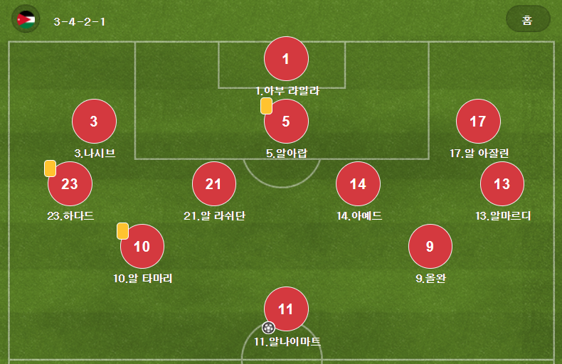선수 교체, 경고, 골킥, 퇴장에서는 두 팀 간 큰 차이가 나타나지 않았습니다. 경기에서 퇴장은 없었으며, 경고는 요르단이 더 많이 받았습니다. 종합적으로, 대한민국은 볼 점유율과 공격적인 플레이를 통해 경기를 주도하며, 상대 골마에 지속적인 위협을 주었습니다.