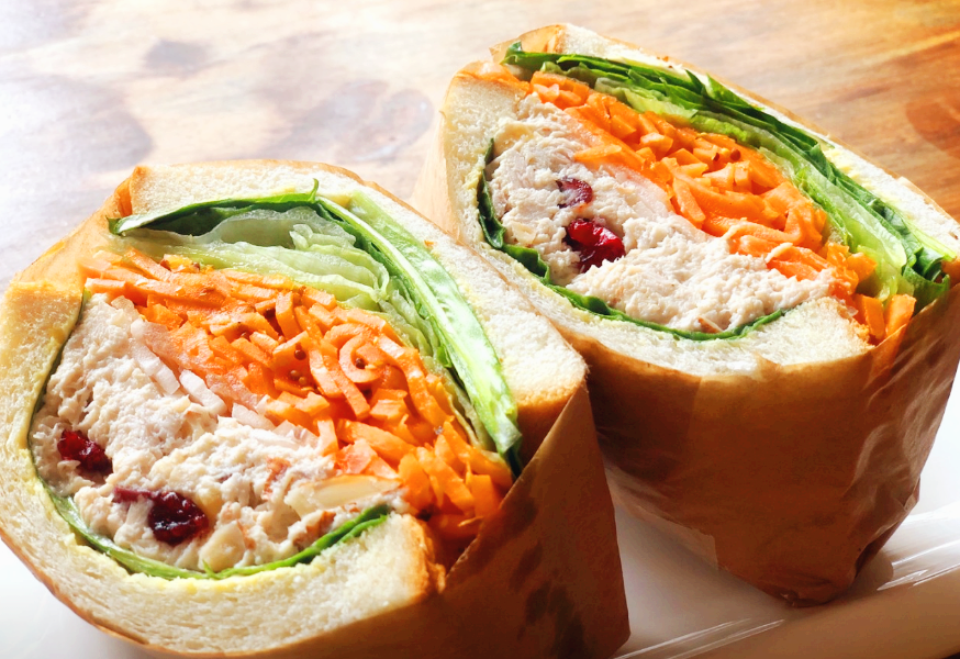 - 설명: 닭안심살, 프리미엄 크림치즈, 볶은 아몬드, 크렌베리, 당근 라페(초절임)가 들어간 샌드위치