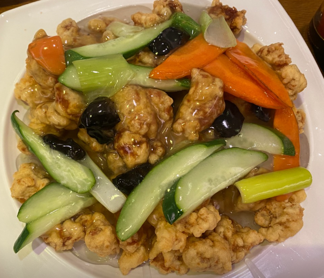 깐풍기 (32,000원): 닭고기를 바삭하게 튀긴 후 매콤달콤한 소스에 볶아낸 요리로, 겉은 바삭하고 속은 부드러운 닭고기의 맛이 일품입니다.