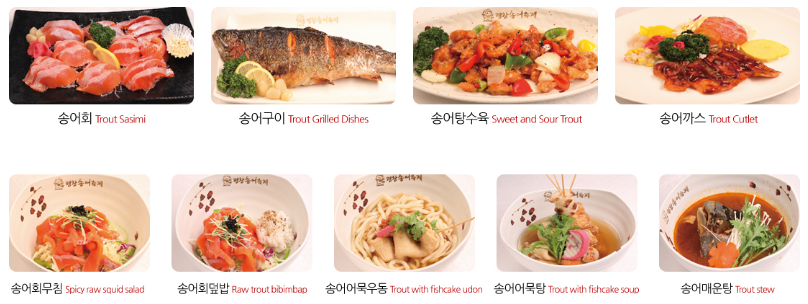 - 송어회: 쫄깃하고 담백한 맛을 자랑하는 대표 메뉴