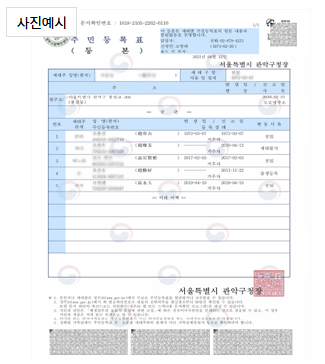 본인 신청이 아닌 "가구원"신청 시 주민등록등본 첨부 주의할 점은 전 가구원의 주민등록번호 뒷 자리를 " * " 표 처리하여 첨부해야 합니다. 주민등록번호 뒷 자리 노출시 서류가 반송처리됩니다.