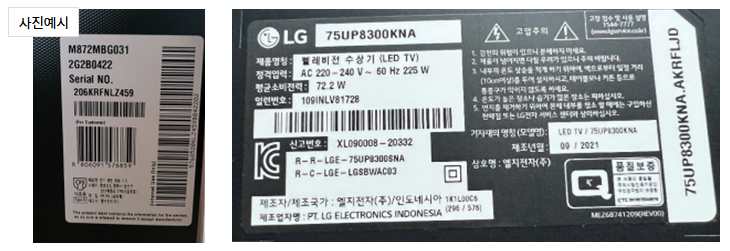 제조번호 혹은 시리얼넘버(Serial No)가 보이도록 사진을 정면에서 촬영