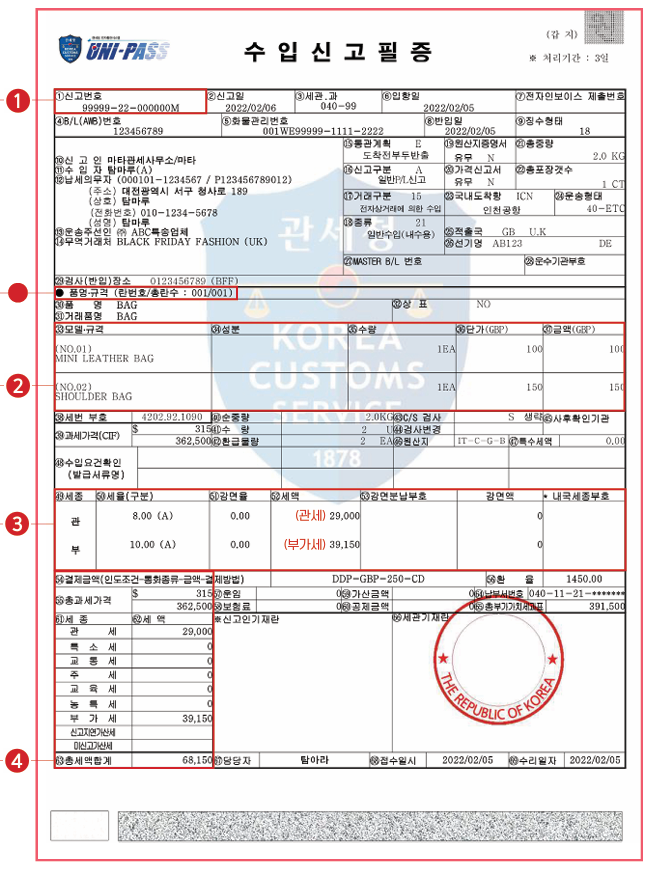 수입신고필증 안내
